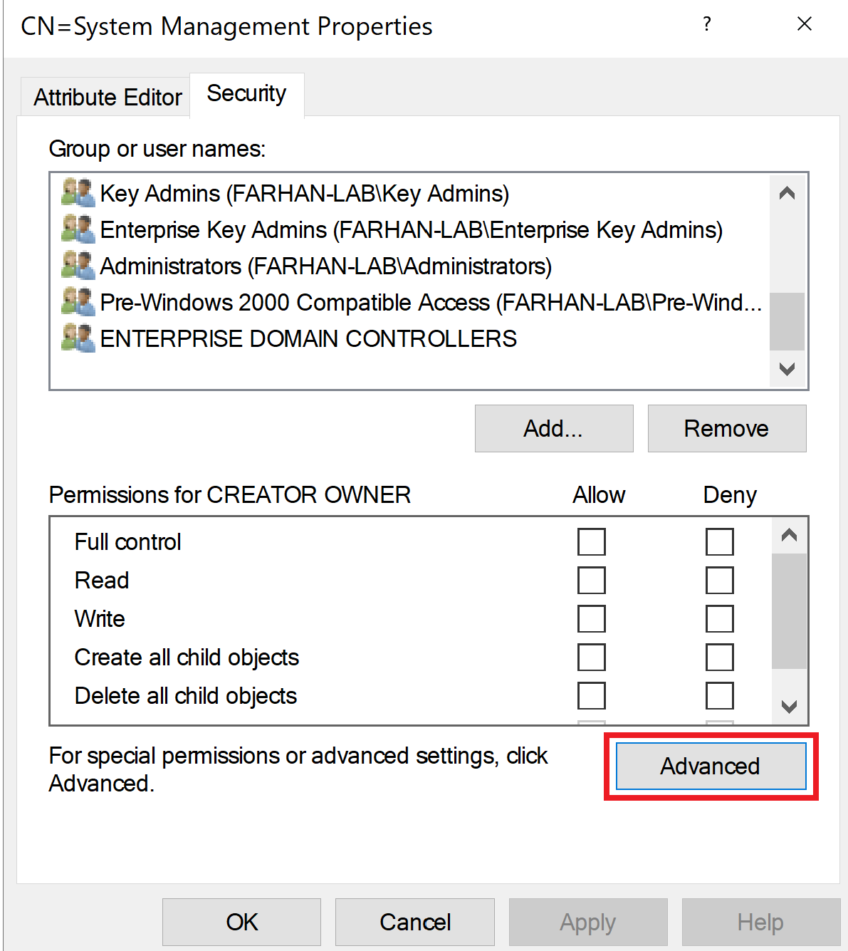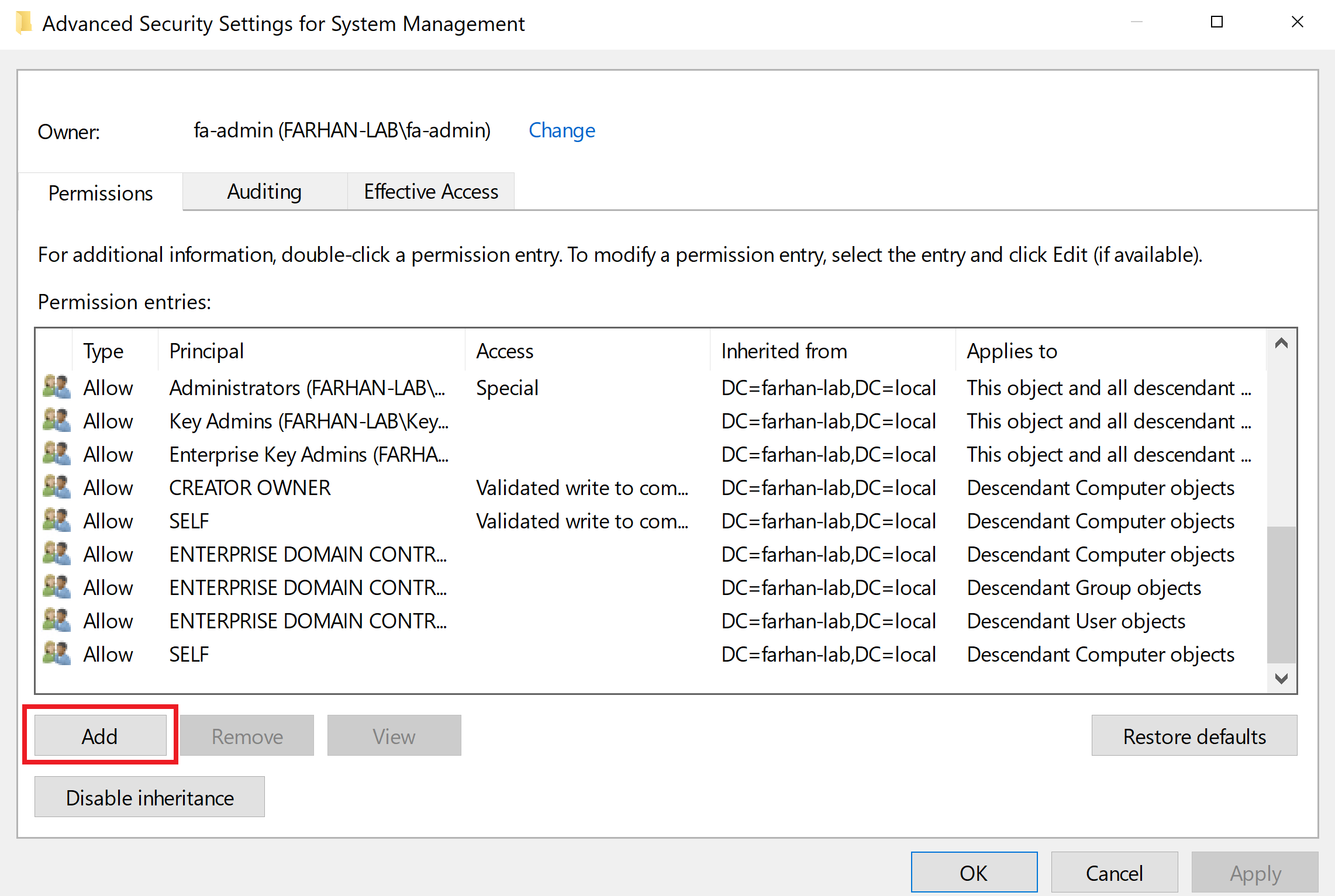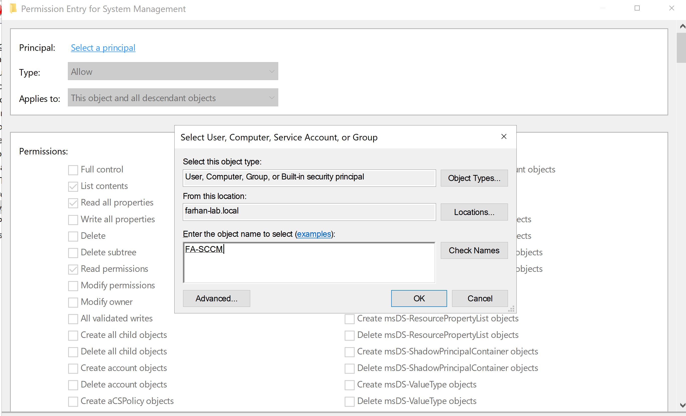 Delegated Full Control to FA-SCCM$ (this step comes after configuring FA-SCCM server)