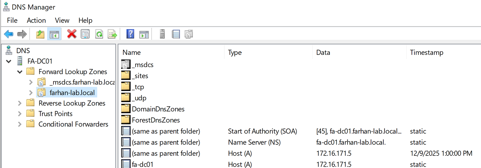 | FA-DC01 | Domain Controller | 172.16.171.5 |