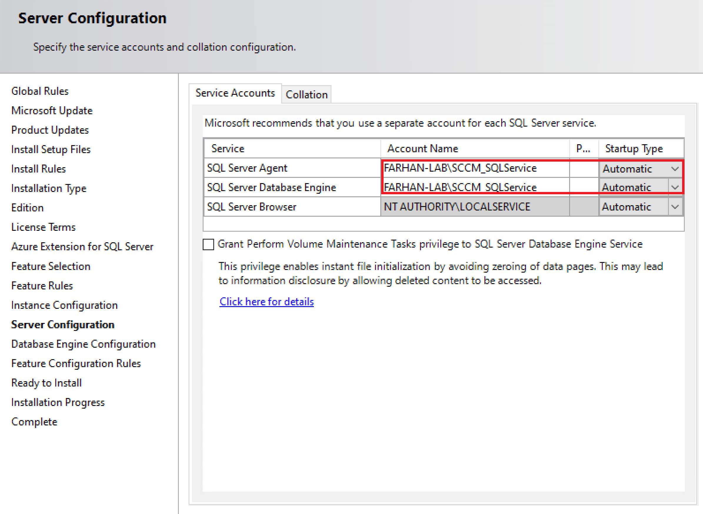 I am using one server for both SQL and SCCM (collocated). This is fine for labs and small organizations but not recommended for large enterprises due to higher I/O requirements which may limit the high availability options.