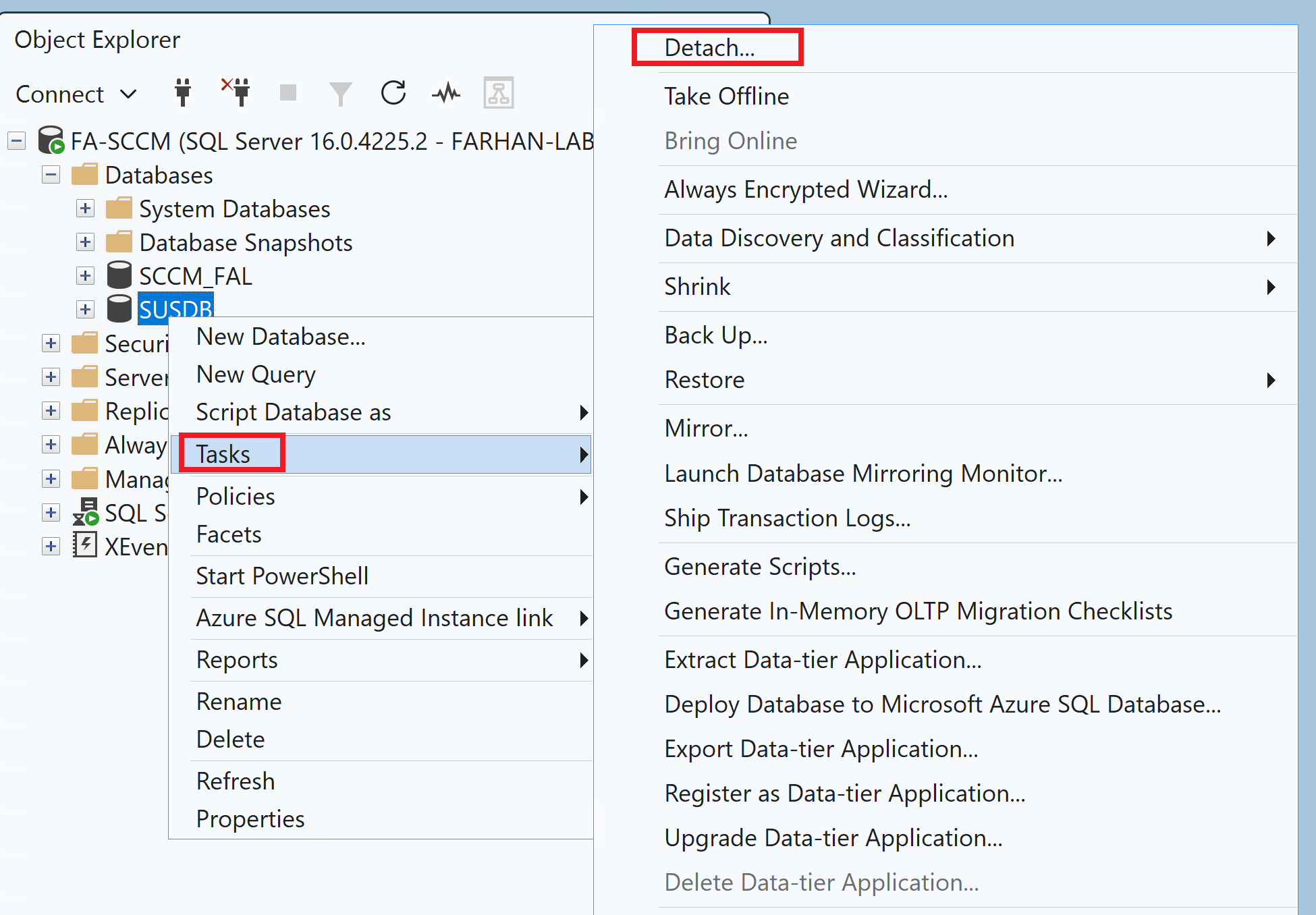 Copy existing SUSDB.mdf & SUSDB_log.ldf path
