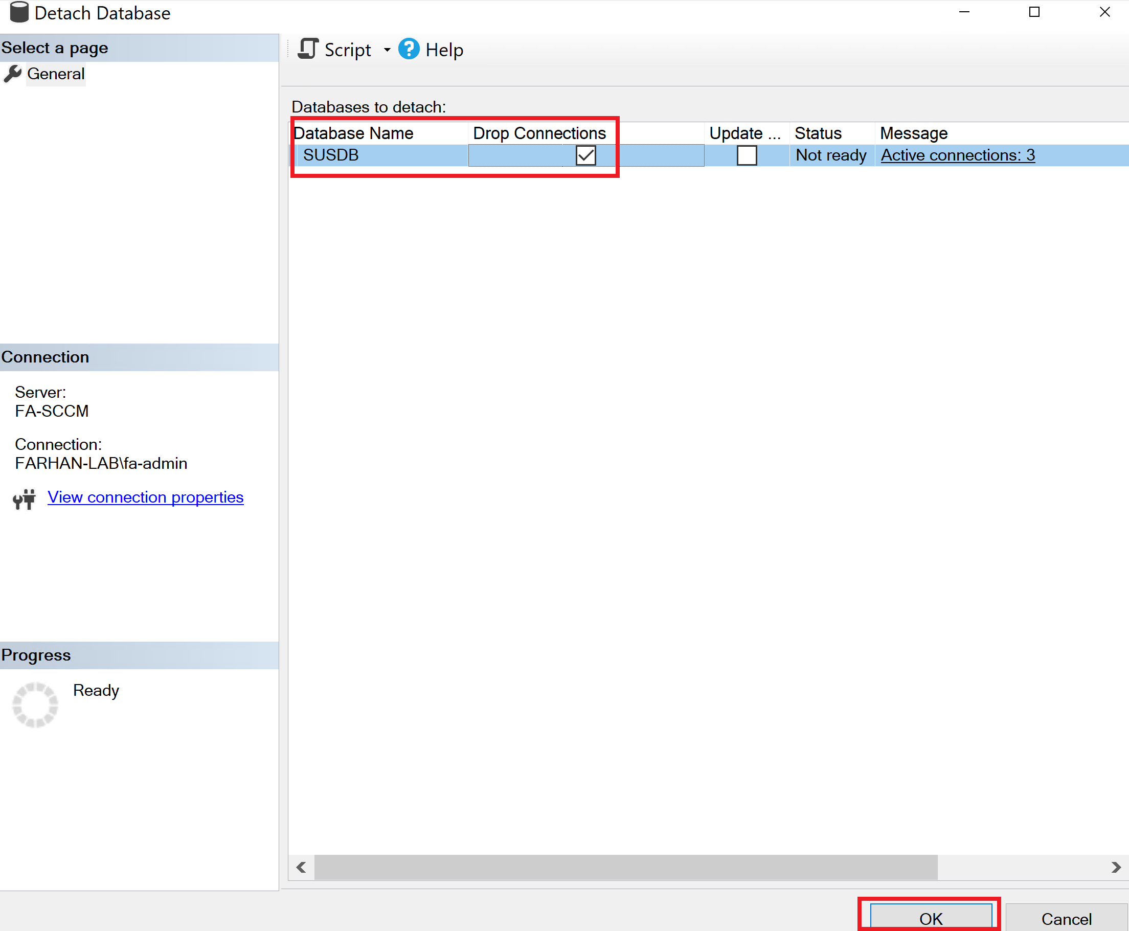 Change SQL datafile path → SCCM_SQL_MDF drive