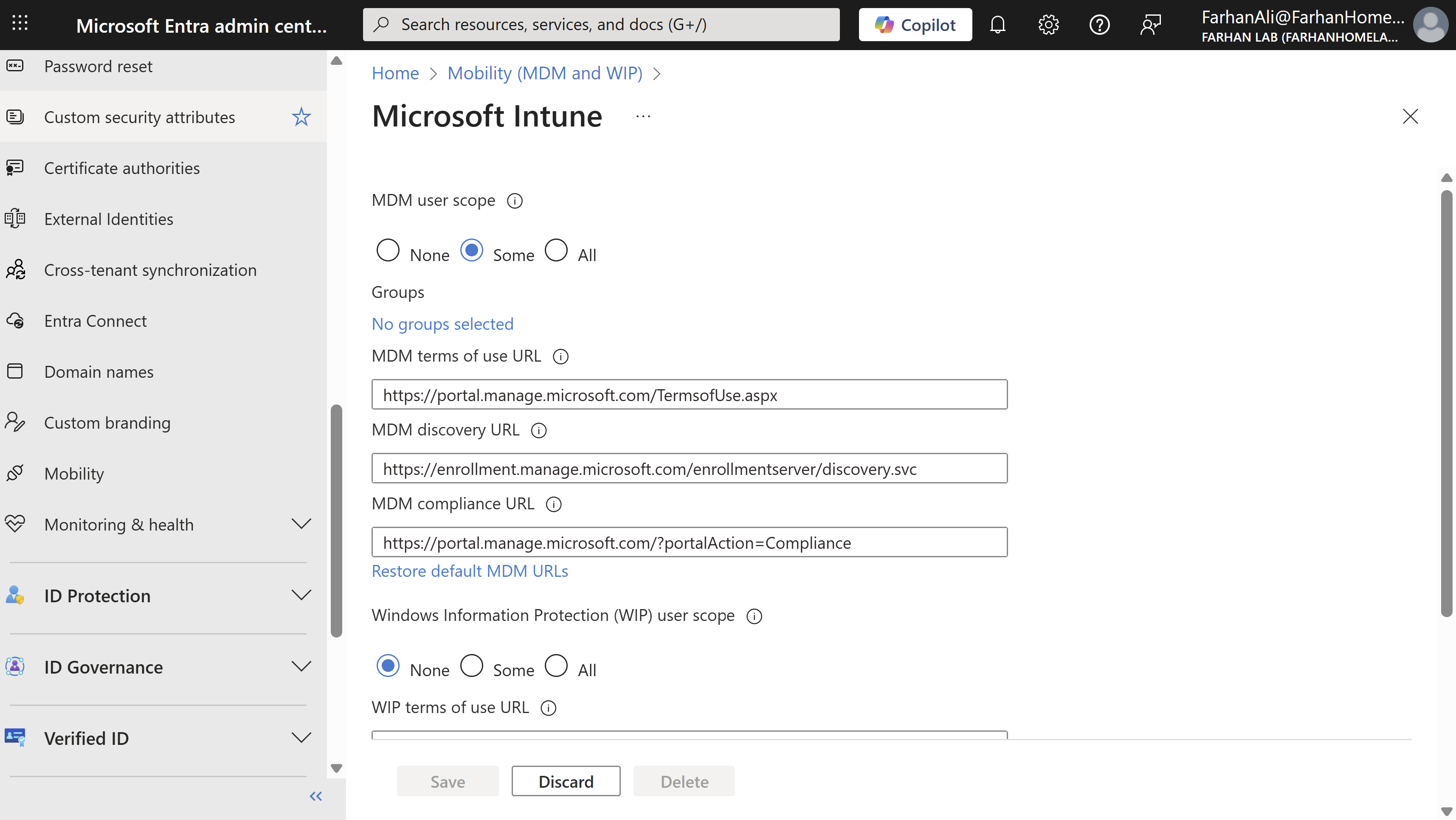 Navigate to Microsoft Entra admin center -> Mobility -> MDM user scope