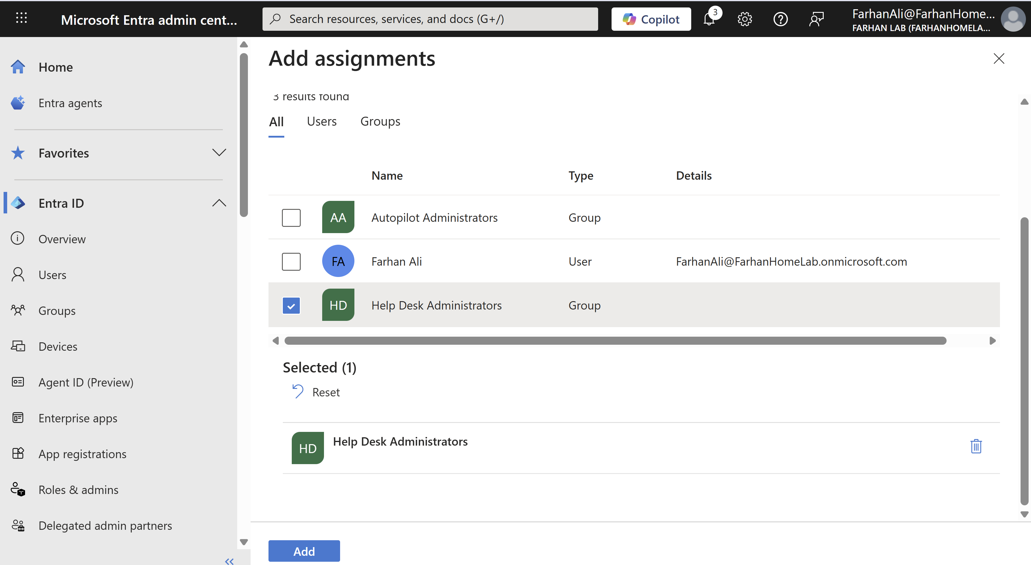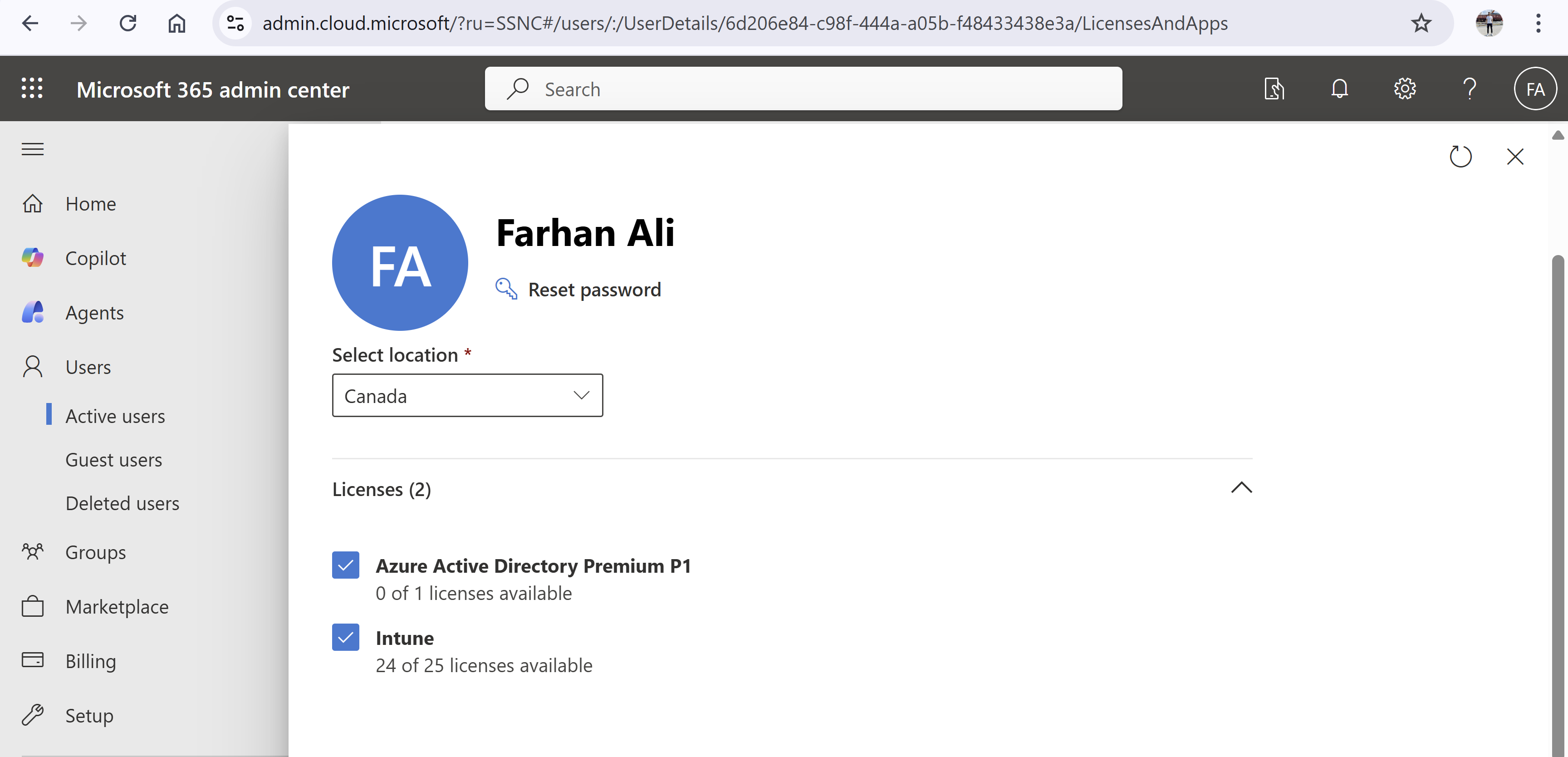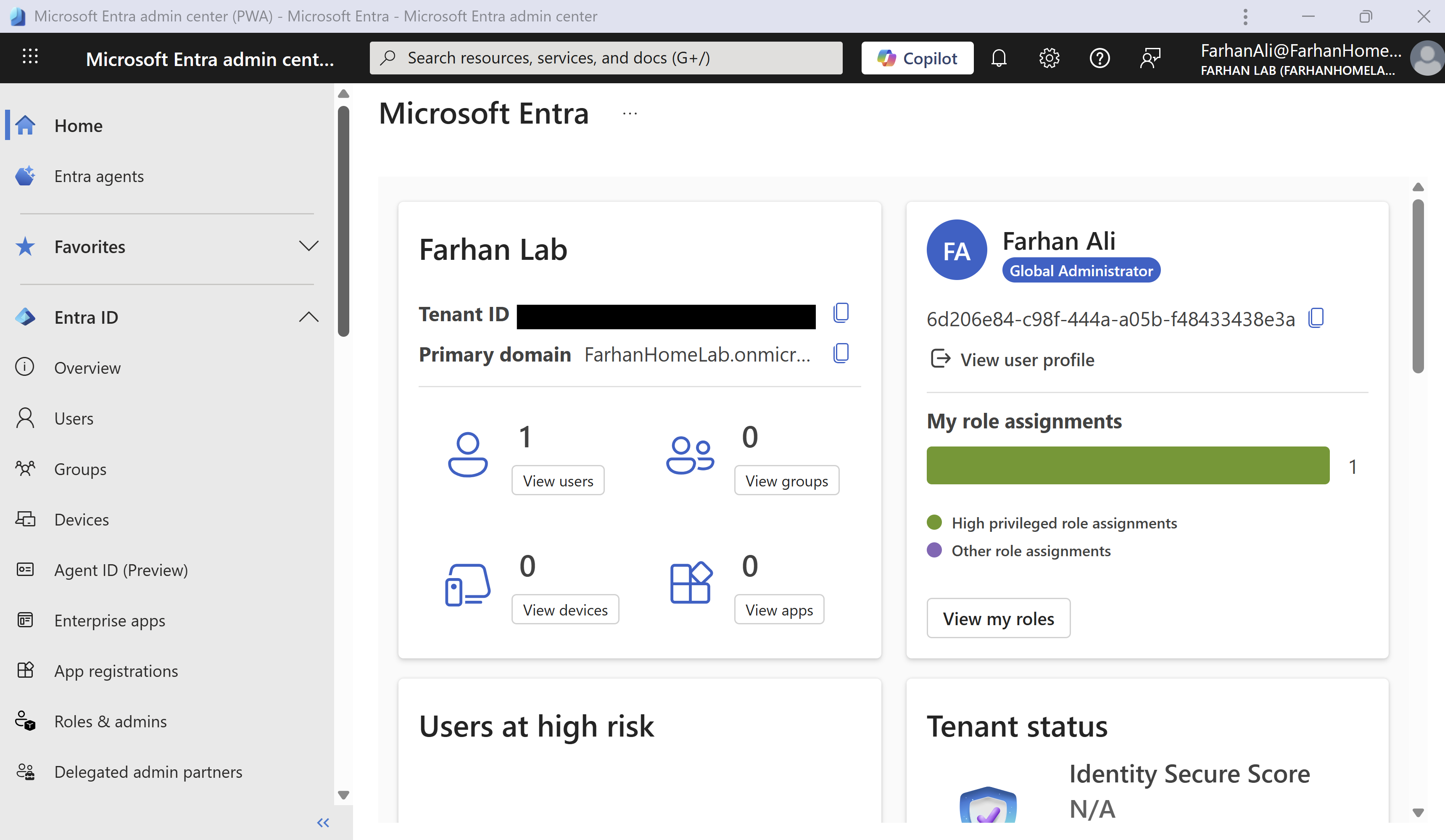 - Username (UPN): farhanali@farhanhomelab.onmicrosoft.com