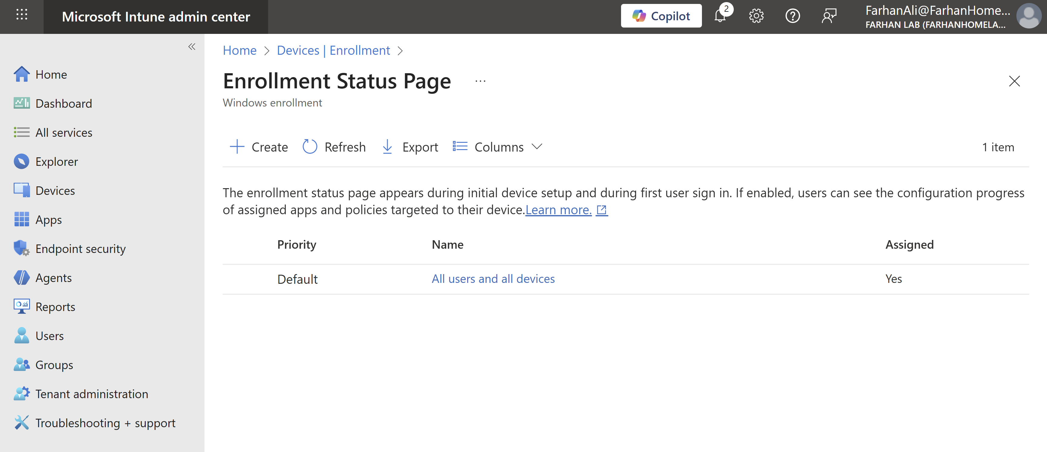 | Set up ESP in Intune | Set up the Enrollment Status Page in Intune |