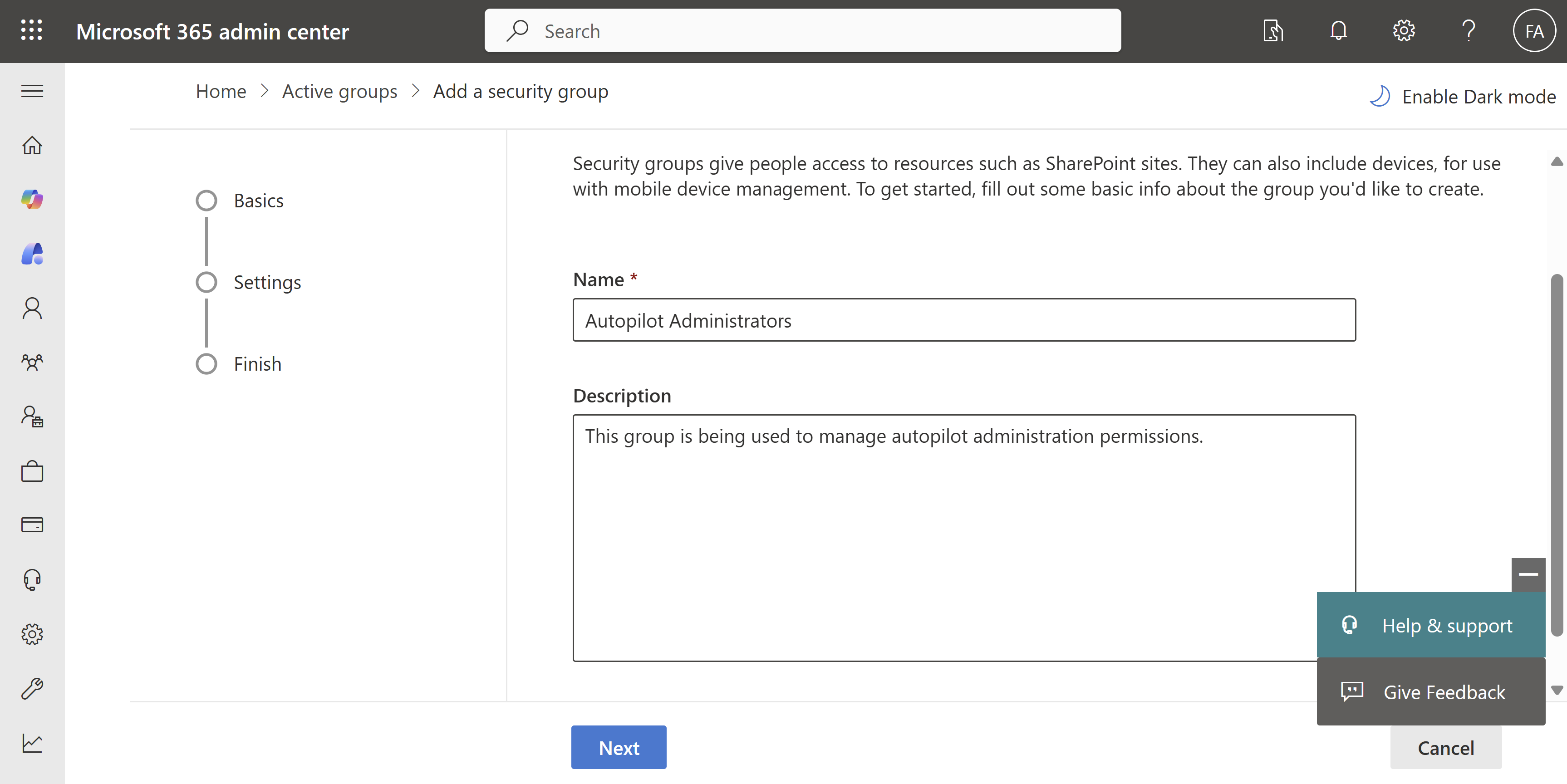 Click “Assign” and name the assignment Autopilot Administrators or anything that makes sense