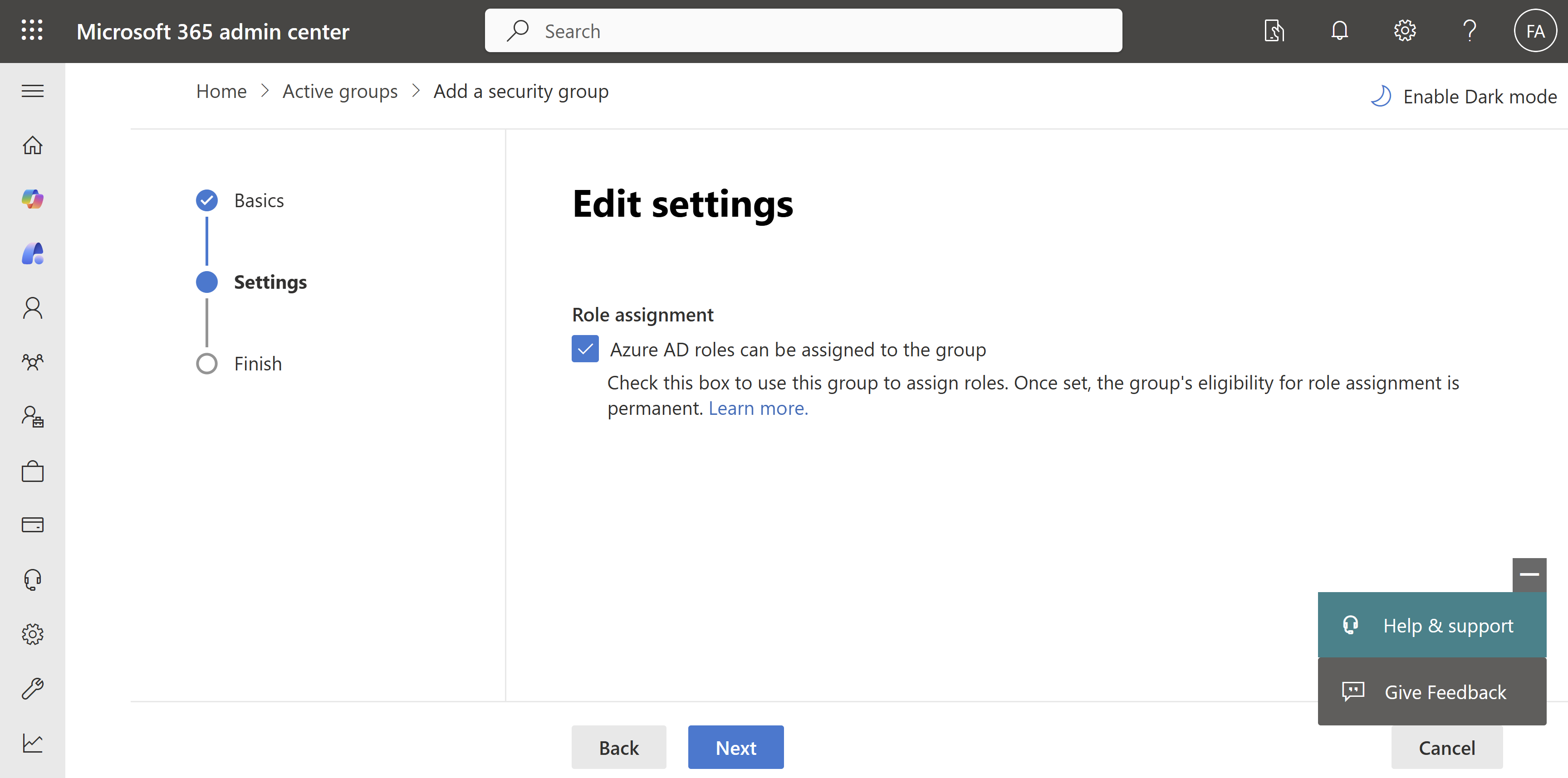 Navigate to Microsoft 365 admin center -> Groups -> Active groups -> Security groups -> Add a security group