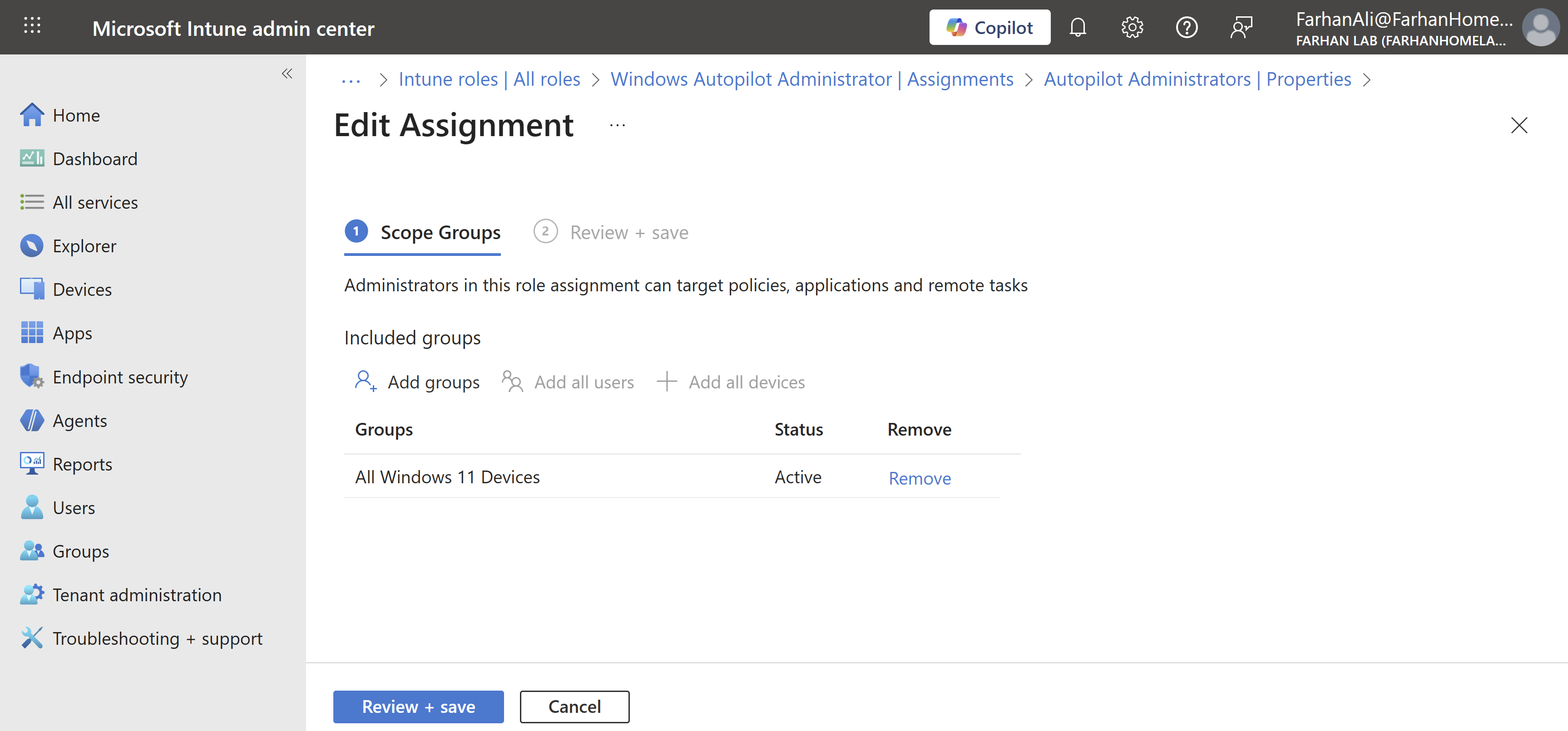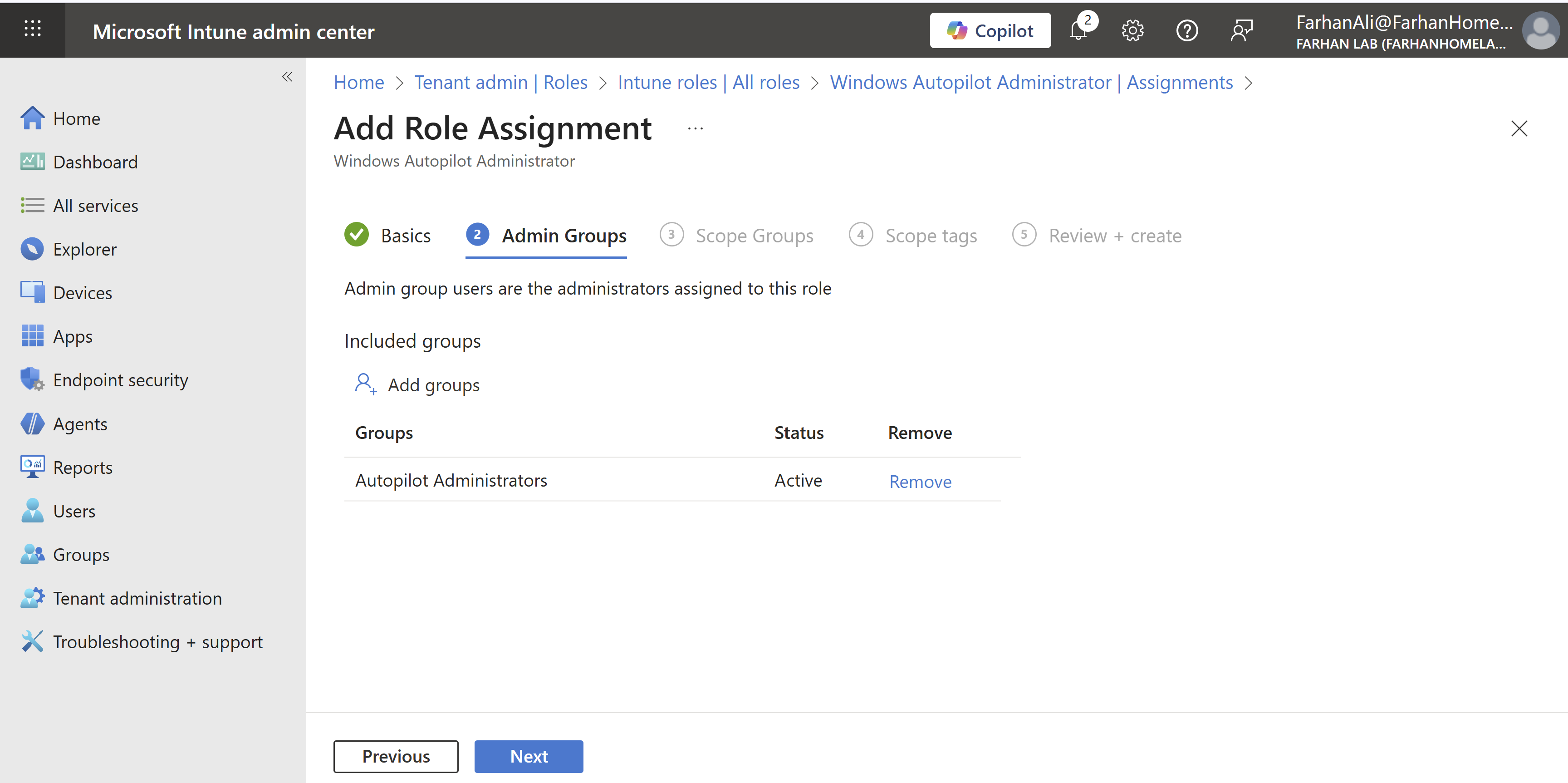 Add users who will be administering autopilot device preparation to the group. I added myself to the group for this lab.