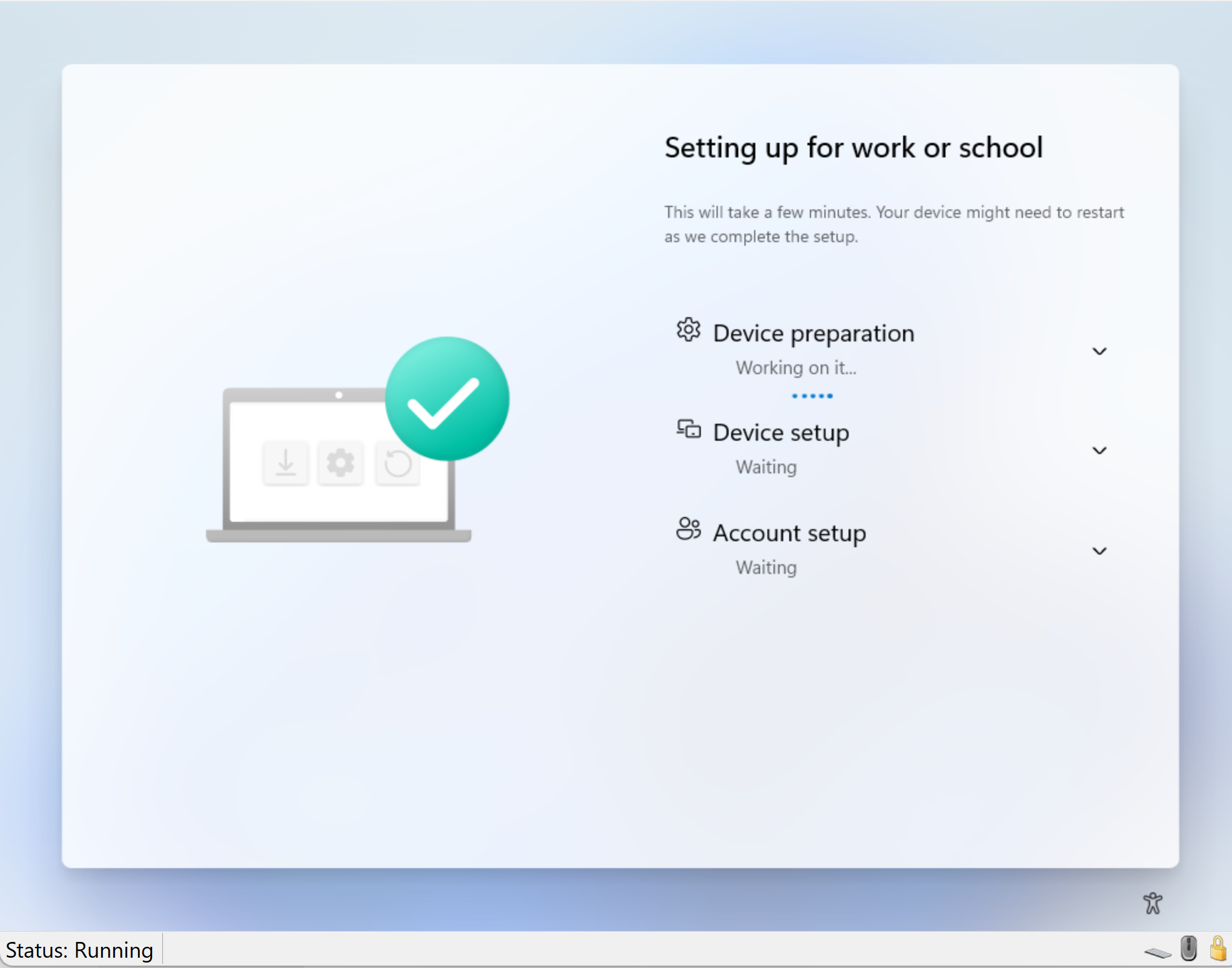 After sign-in, the Enrollment Status Page (ESP) showed up and began tracking the device provisioning process.