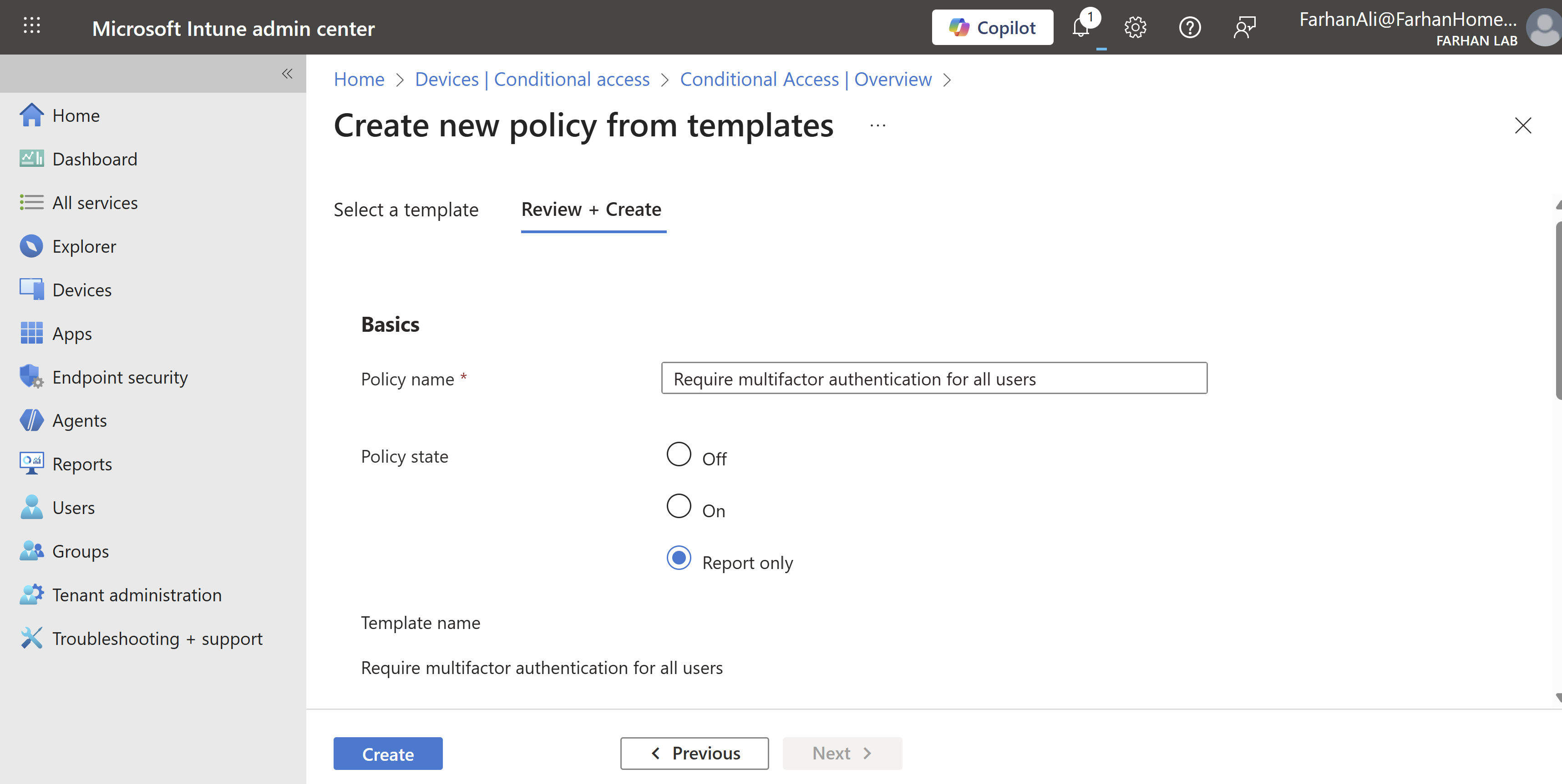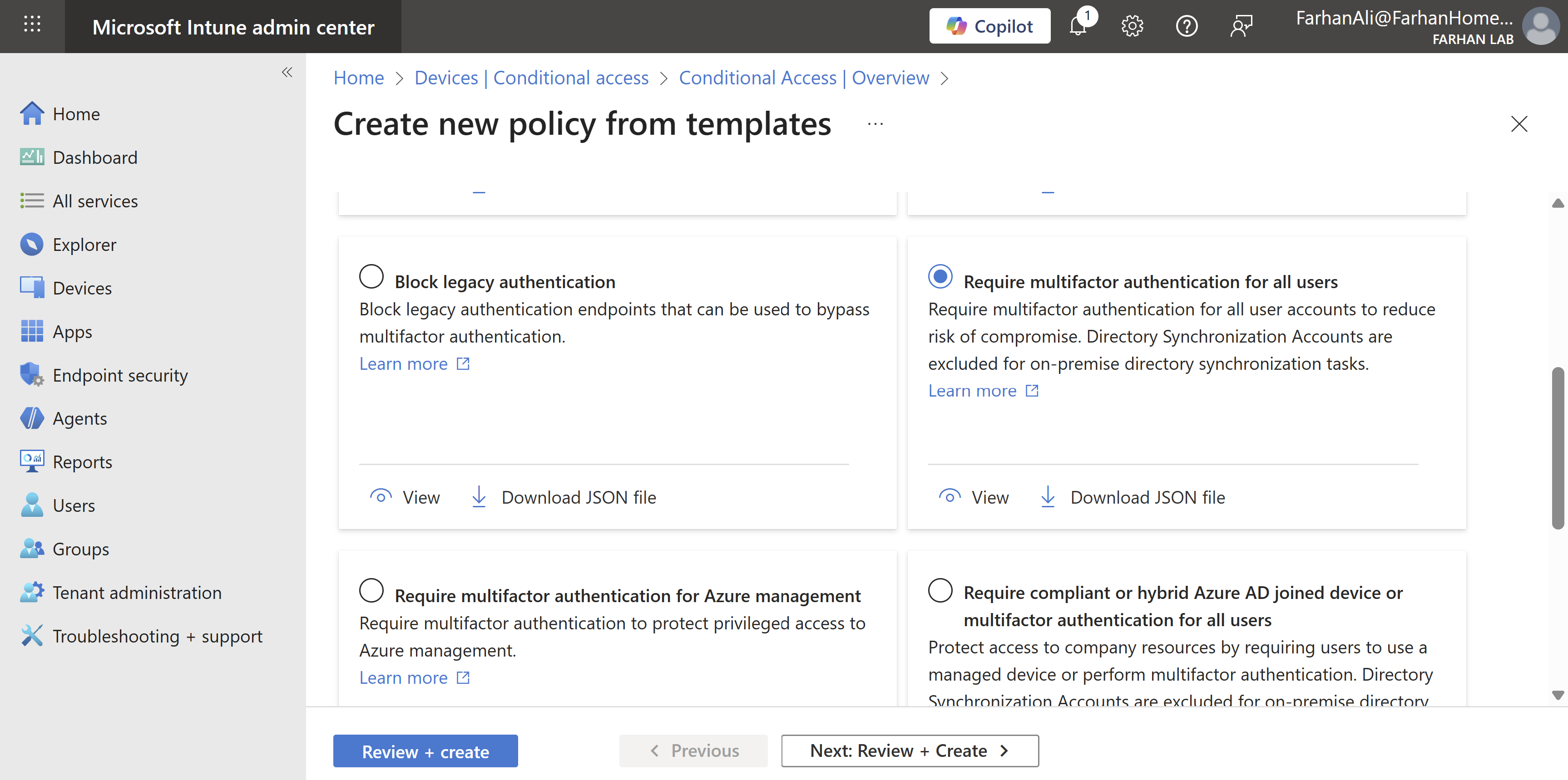 While this works in a lab environment, it’s important to recognize that in an enterprise environment, compliance and Conditional Access policies are foundational to security and must be designed, tested, and validated meticulously.