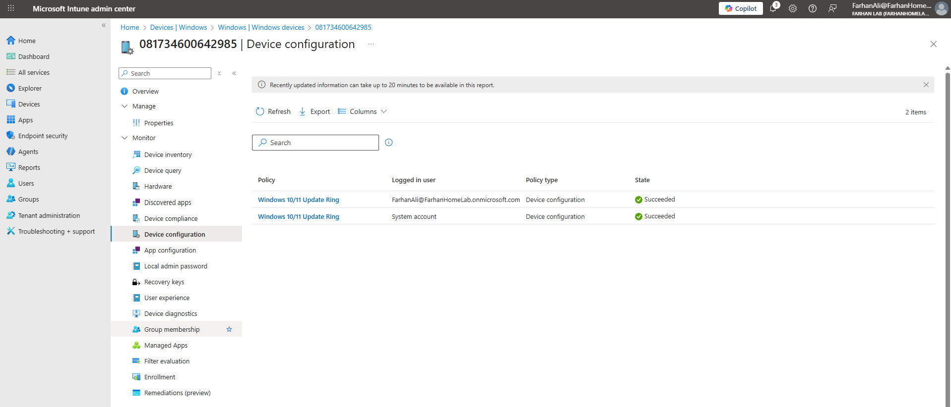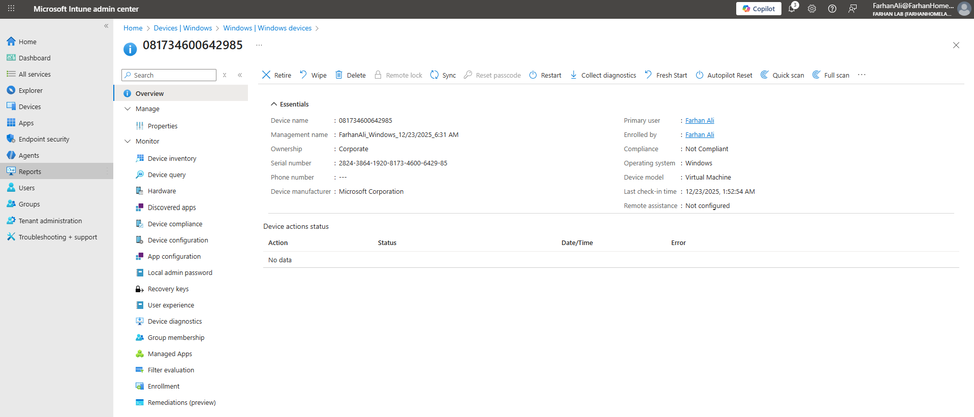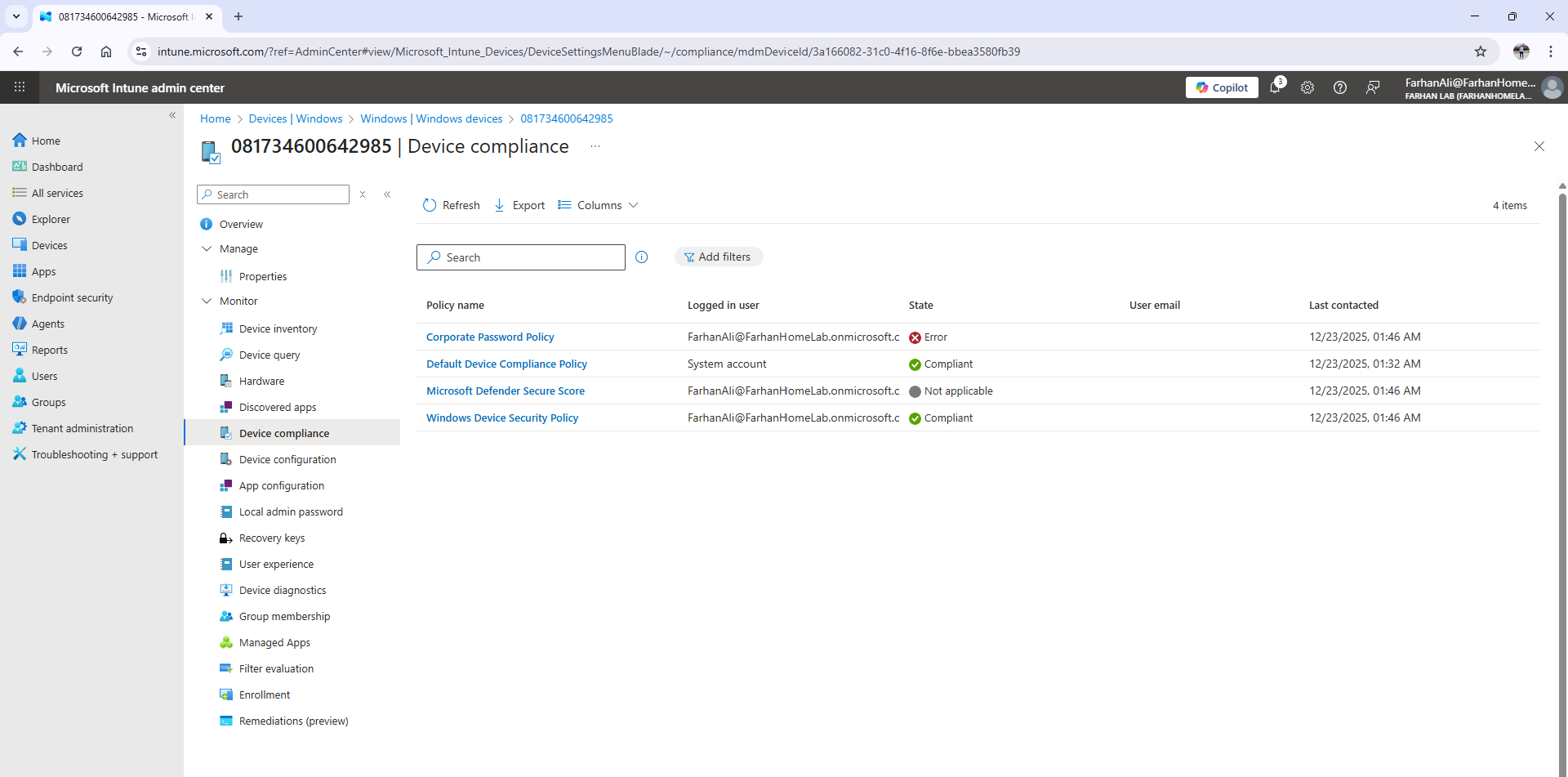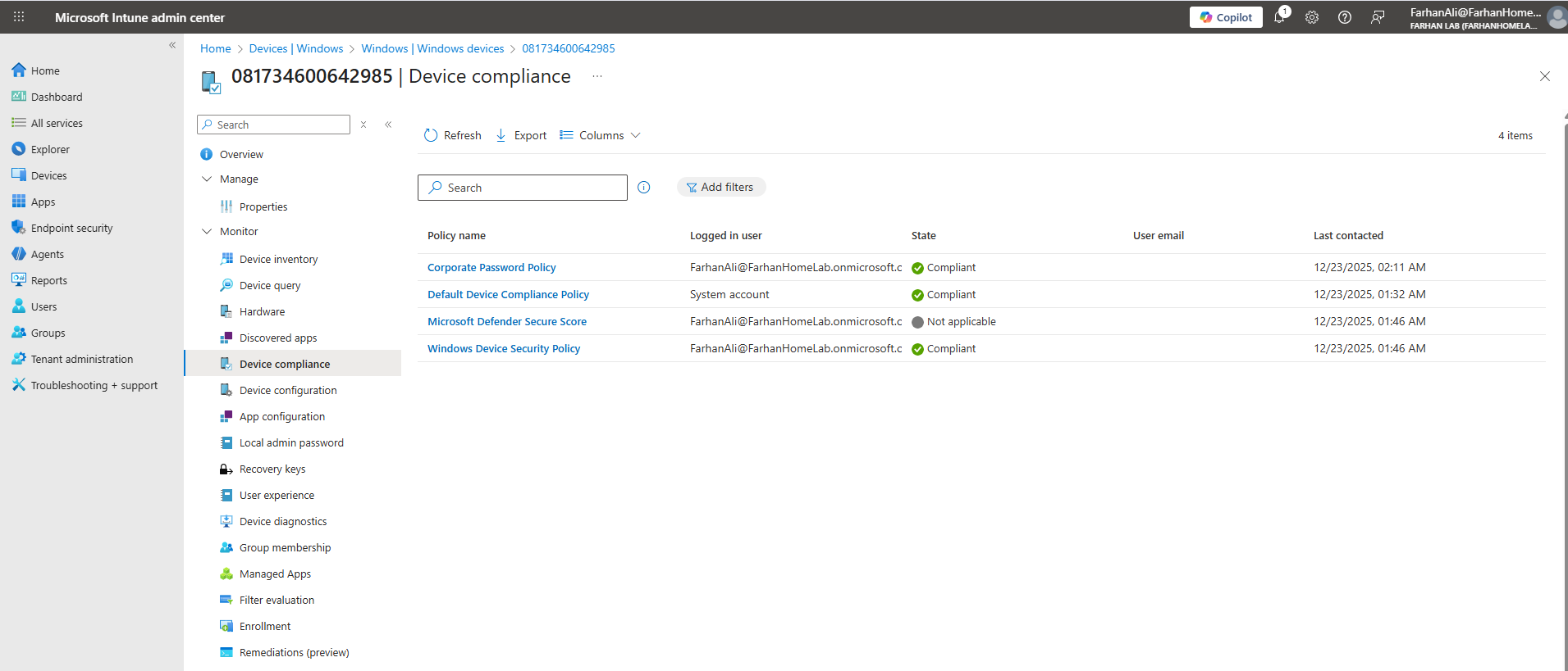 It’s important to note that I configured basic compliance and Conditional Access policies to validate Windows Autopilot functionality.